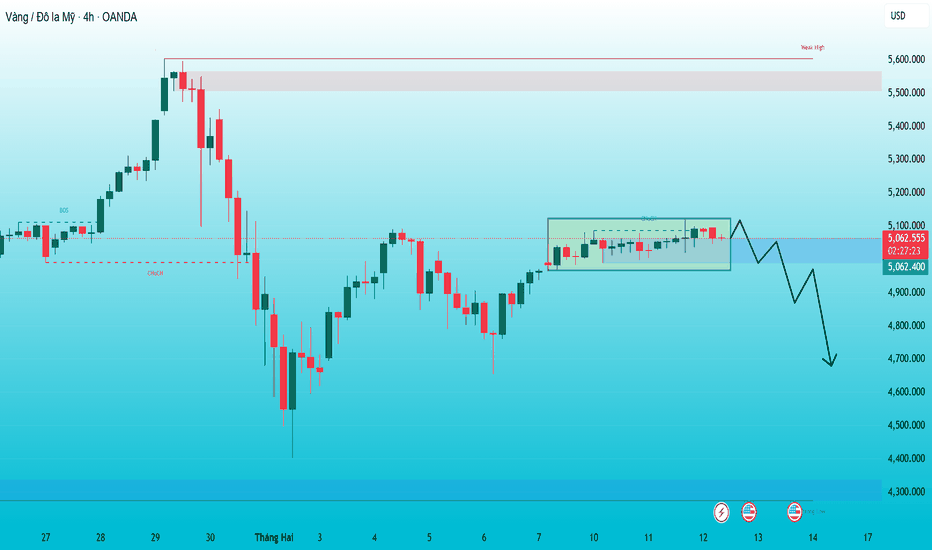 - Hiện tại vàng đang sideway vùng giá 5.000-5.100, rất có khả năng vàng sắp phá vùng này và đi lên vùng giá 5.238 - 5.310 (vùng này là cùng có DEMAND ZONE cũ khung 3H đã bị phá), sau đó giá sẽ phản ứng đi xuống vùng giá 5.000.