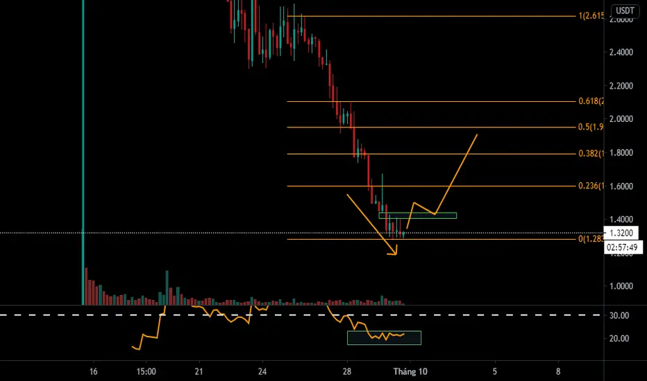 Trên khung H4 ta có thể thấy ,sau 1 khoảng thời gian khá dài giá chỉ giảm thì hiện tại giá của BEL đang đi ngang cùng với đó RSI< 30 cũng đi ngang để tìm 1 sự tác động tiếp theo . Nếu giá của BEL/USDT phá zone xanh thì BEL sẽ thoát downtrend,bật tăng trở lại .