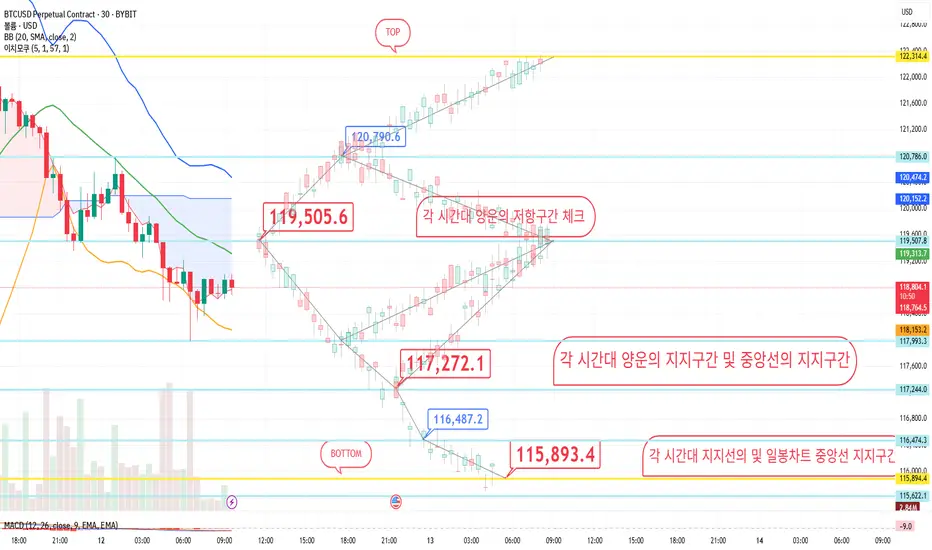 4. 바텀구간인 115,894 구간은 각 시간대 지지선 및 일봉차트 중앙선 구간의 지지구간 입니다.