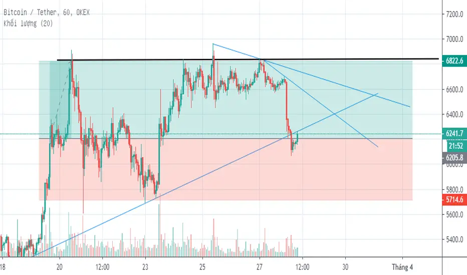 Hiện tại BTC đang chuẩn bị đâm vào lại đường trendline theo xu hướng tăng ở khung 1H