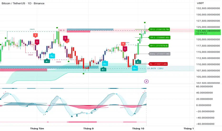 * Signal: We see the BTC uptrend still...Price has formed a bullish pattern since 10/01/2025, buy point at 114311.96 as we have published on the chart.