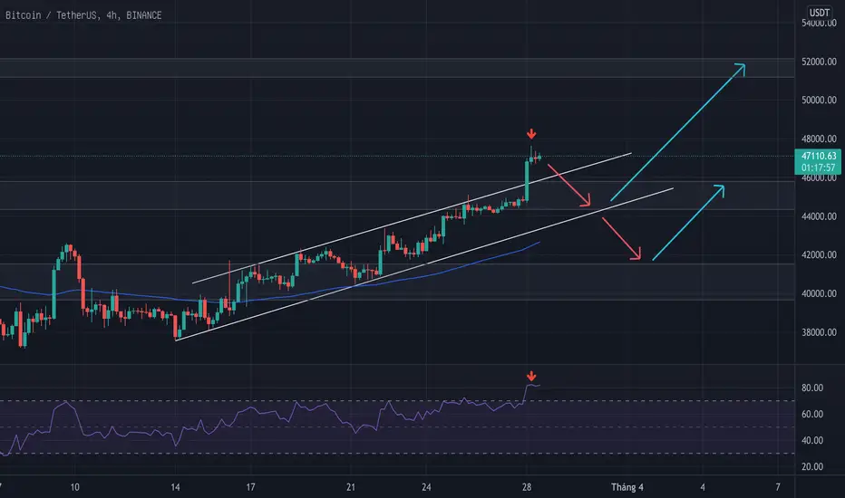 - Nếu giá BTC test lại vùng giá 45k5 mà giá không thể giữ ở mức này mà có dấu hiệu phá qua vùng hỗ trợ này thì khả năng giá có thể chỉ là Pumd ảo và giá có thể về tiếp vùng hỗ trợ 41k5 ( Khả năng này thì hiện tại khá thấp, nhưng không phải không có, nên chúng ta cần đề phòng rũi ro mọi lúc )