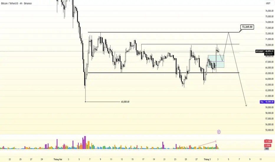 📌 Sau khi về test biên như mình đã nhận định ở bài trước, và hồi phục với volume to, đoạn này chúng ta có thể kì vọng về kiểm tra các vùng ở trên H4 - 72k 73k.
