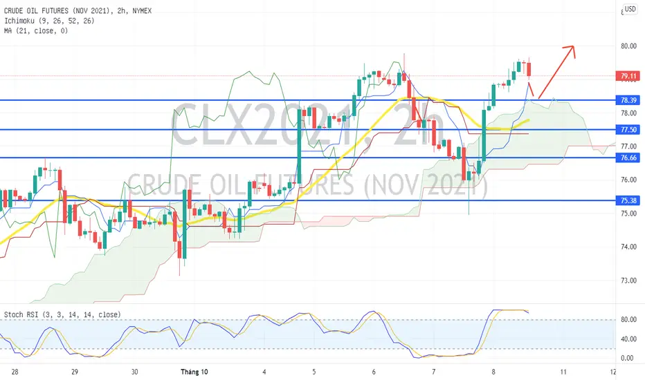 Về mặt kỹ thuật: Trên khung giá H2, giá dầu thô tháng 11 tăng mạnh trong tối qua và quay lại phía trên vùng mây Senkou. Các tín hiệu từ mây Ichimoku là tích cực nhưng Chikou span đang tiếp cận đường giá và có thể cho tín hiệu BÁN. SRSI đã nằm tại vùng quá mua và sẽ có thể đảo chiều giảm trở lại. Vùng hỗ trợ gần nhất là 78,3.