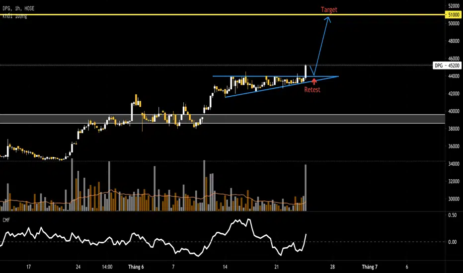 DPG kết thúc phiên chiều nay đã xuất hiện tín hiệu breakout mô hình tam giác đáy tăng báo hiệu cho xu hướng tăng mạnh mẽ trong tương lai.