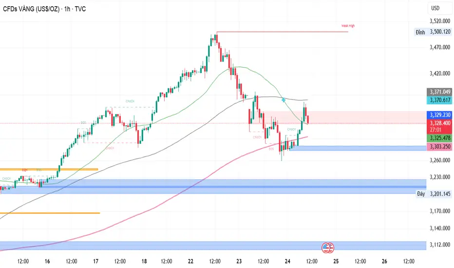 Xu hướng gần nhất: Sau cú giảm mạnh từ đỉnh gần $3,500, giá đã tạo cấu trúc đáy mới rồi hồi phục lên lại vùng cung trước đó.