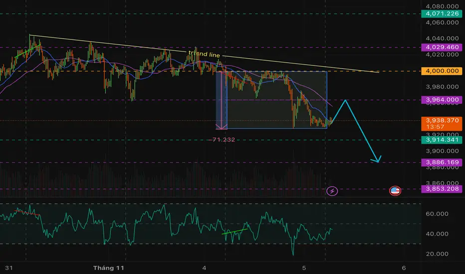 - Giá chạm kháng cự 3964 - 4000 - 4029 (bật lại kèm nến M5 xác nhận)
