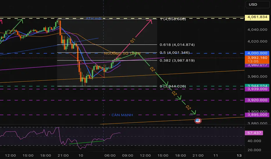 • Giá hiện dao động quanh 3,987 – 4,000 (vùng Fibo 0.382–0.5).