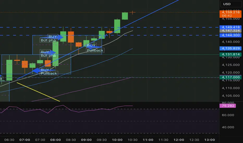 - EMA 20/50: Pullback thường chạm EMA này rồi bật lại
