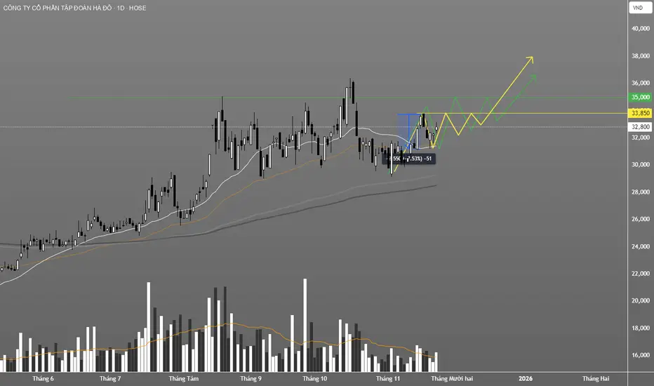 Kịch bản theo dõi HDG : Theo dõi lực bán tại 2 điểm kháng cự màu vàng vàng hoặc xanh ( tùy giá nén tại đâu). Không mua đuổi vì SL sẽ khá lớn và dễ có "cung treo trên đầu"