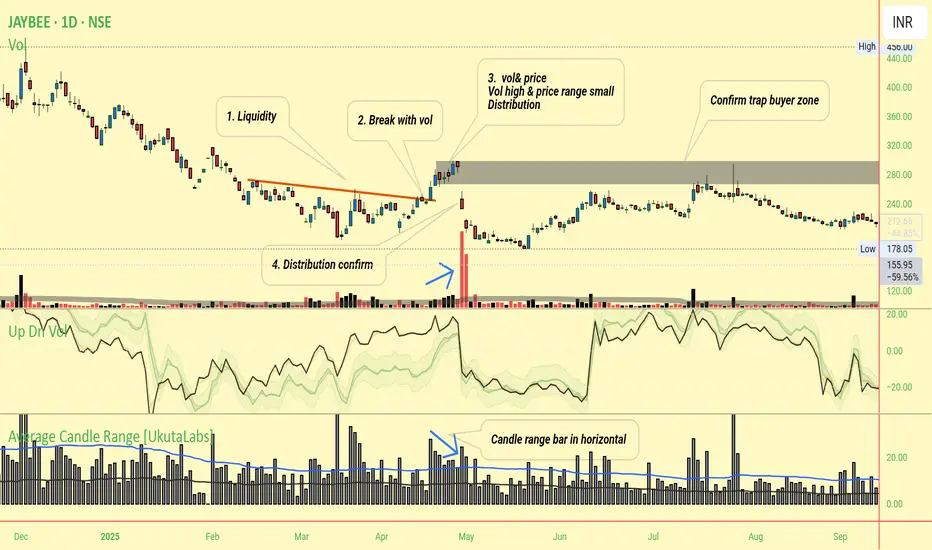Small candle & rise volume distribution confirm only when big candle move down with high volume or low but have big body