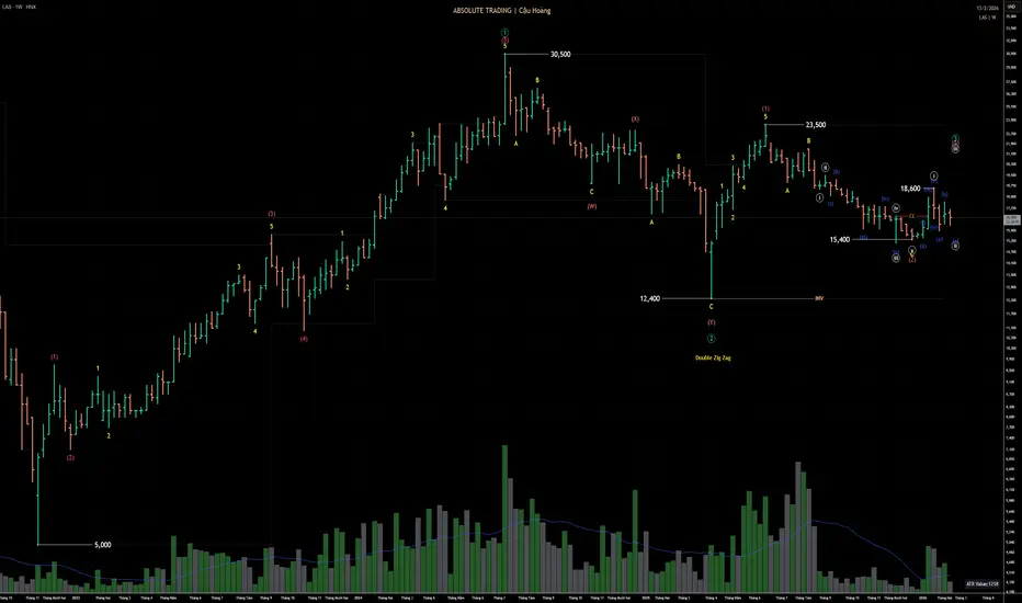 •Weekly, LAS đã hoàn tất chu kỳ tăng 5 sóng đỏ tại vùng 30,500, hoàn thành sóng 1 xanh lá.