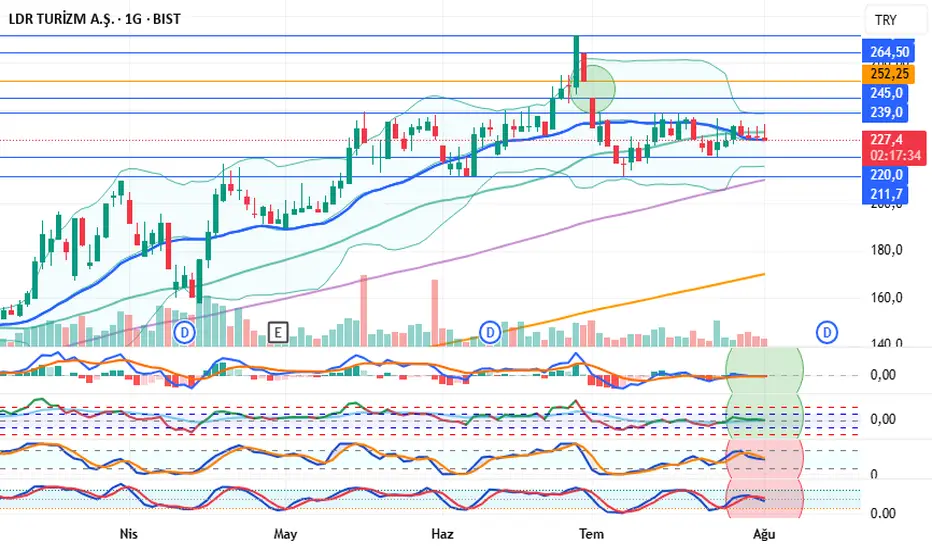 Günlük teknik indikatörler kısmi Pozitif. Hisse 21 günlük fiyat ortalamasının hemen üzerinde yatay olmuş durumda. Temettü ödemesine kadar desteğin artabileceğini düşünüyoruz. ortalama üzerinde kalabilir ise 252,25 seviyesindeki fiyat boşluğunu kapatma ihtimalini yaratabilir. Olası satışta 220,0 desteği takip edilecektir.
