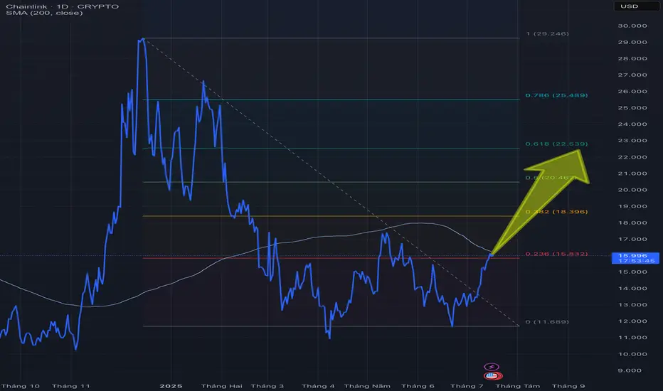 Link đã thoát khỏi mô hình tam giác điều chỉnh (bear). Nếu động lực tiếp tục được duy trì, Link sẽ kiểm tra khán cự $22.5