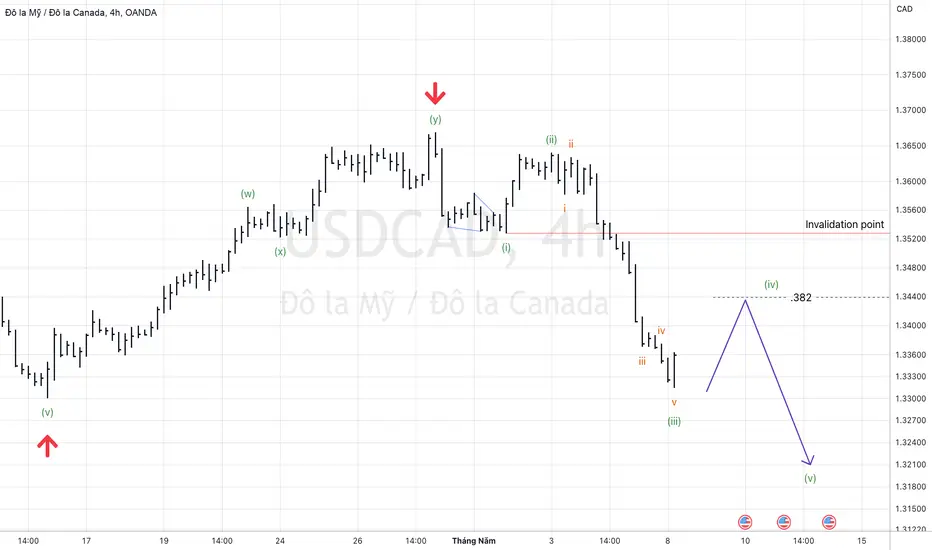 Kịch bản phân tích sóng elliott cho USDCAD (08/5)