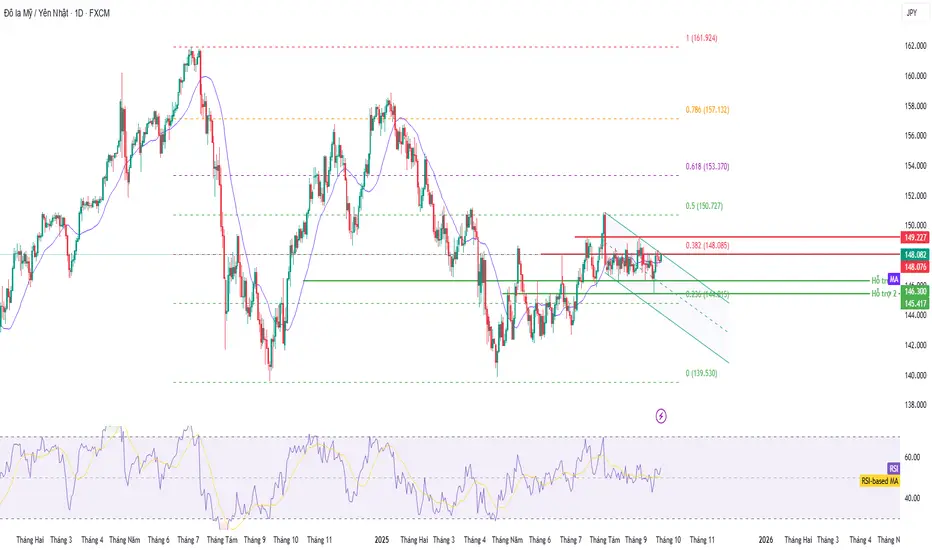 Hiện tại, xu hướng ngắn hạn ngả về tăng, nhưng cần một cú breakout rõ ràng trên 149.2 mới chắc chắn.