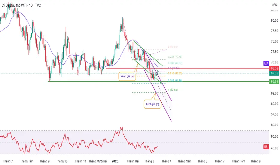 Trong ngắn hạn, mục tiêu giảm giá vào khoảng 65USD, mức thấp kể từ ngày 10 tháng 9 năm 2024, sau đó là vị trí của Fibonacci mở rộng 0.786%. Các vị trí đáng chú ý cho xu hướng giảm của dầu thô WTI sẽ được liệt kê lại như sau.