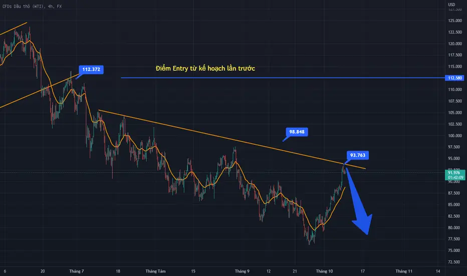 Đường Trendline giảm của dầu đang quanh vùng 93$. Đây là một vùng bán tốt. SL quanh vùng 110$ gần như là một vùng quá an toàn.
