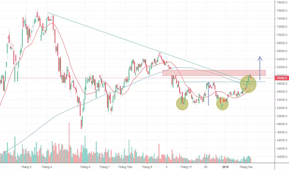- VCB hình thành mô hình 2 đáy sau khi vượt qua ngưỡng 58, đồng thời vượt MA200