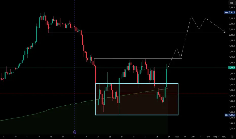 Giá bật lên khỏi vùng hỗ trợ 1.890–1.900 (box xanh).