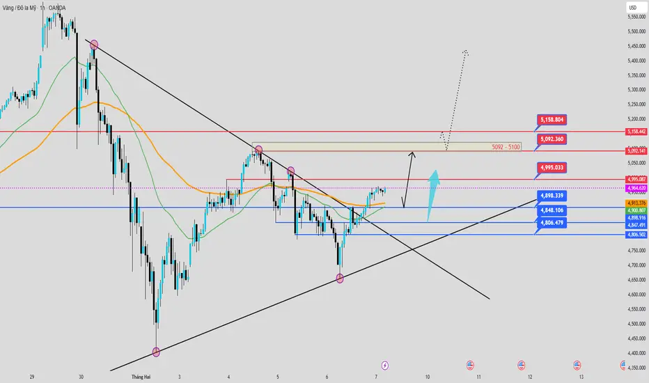 2. Nếu falsebreak vùng (4995 - 5000) và xuất hiện dấu hiệu đảo chiều tại M5 - M15 thì canh những nhịp Pullback về SELL theo xu hướng điều chỉnh ngắn hạn.