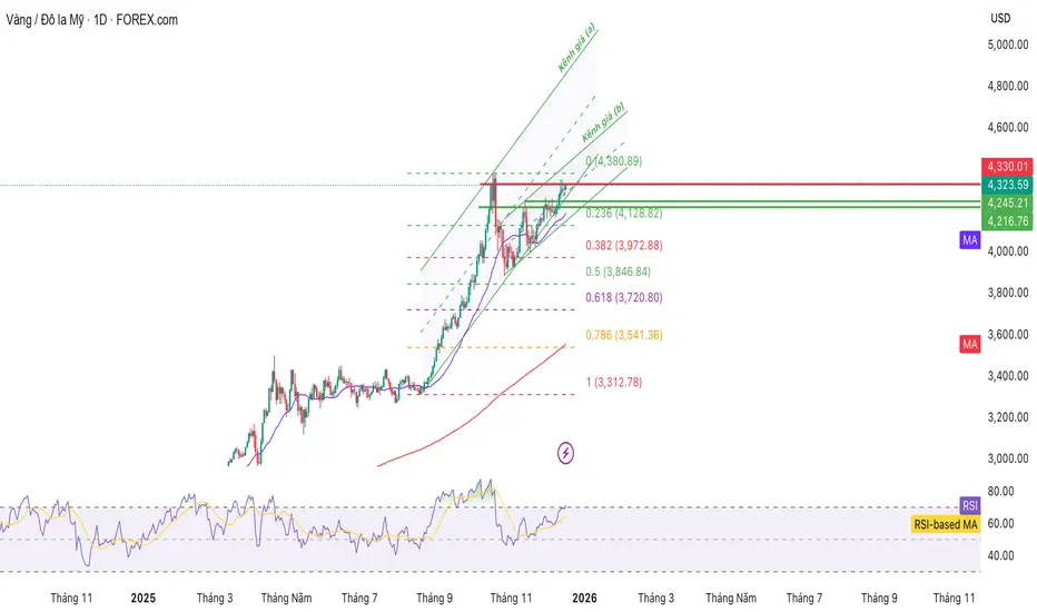 Khi các điều kiện này hội tụ, vàng có thể bước vào một nhịp tăng bền vững mới, với mục tiêu trung hạn mở rộng lên vùng 4.450 – 4.600 USD/ ounce, tương ứng biên trên của kênh tăng mở rộng.