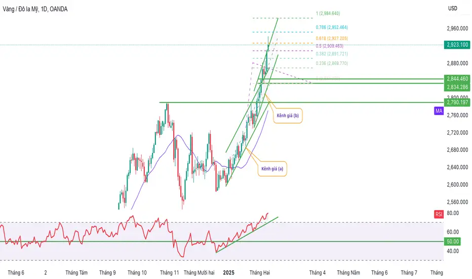 Vàng đã bước đầu đạt được điều kiện cho một chu kỳ tăng mới khi mà phá vỡ trên kênh giá tăng (b), với một hoạt động giá lên trên mứuc Fibonacci mở rộng 0.618% sẽ giúp nó có khả năng hướng đến mức 2.950 – 2.952USD là khu vực của mức Fibonacci mở rộng 0.786%.