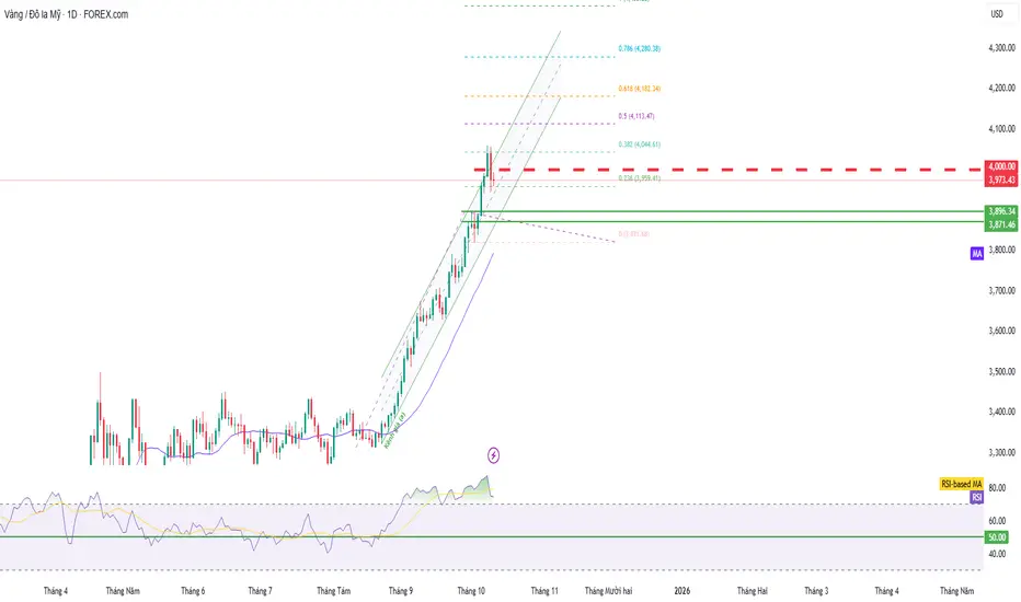 • Dù vừa có nhịp điều chỉnh nhẹ từ vùng đỉnh quanh 4.000 USD, nhưng cấu trúc xu hướng higher high – higher low vẫn được duy trì.