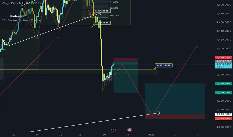 Rio nghĩ đợt giame vàng vẫn sẽ còn tiếp diễn cho 2 ngày cuối năm 30-31/12. Nên thiên hướng hôm nay Rio sẽ canh sell tiếp nếu giá hồi nhẹ lên 4370-4380 và sideway đoạn này vài cây Doji M30 sau 10h sáng