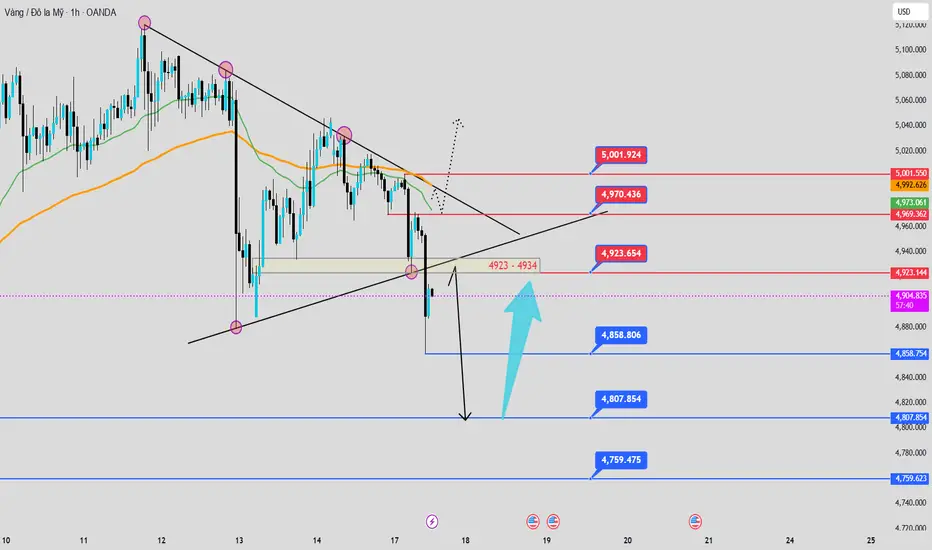 1. Gía đã breakout trenline tăng + breakout vùng (4923 - 4934) + phá vỡ cấu trúc Higher Low ưu tiên chờ các nhịp pullback về SELL theo sóng điều chỉnh hiện tại.