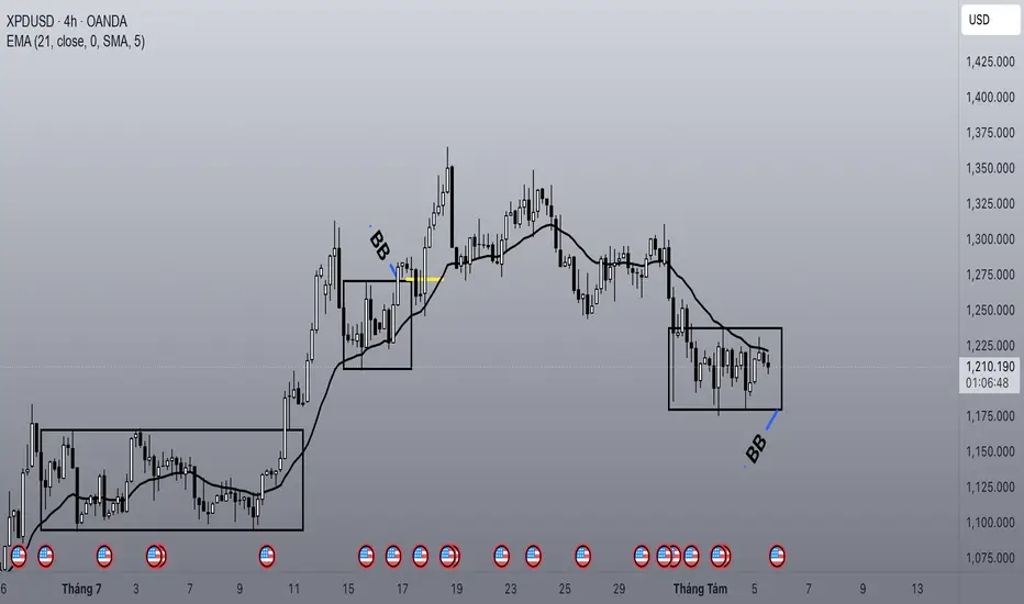 Downtrend đã hình thành và giá đang tạo block nằm ngang, thuận lợi cho thiết lập BB. Chờ đoạn nén dày hơn rồi phá xuống để sell