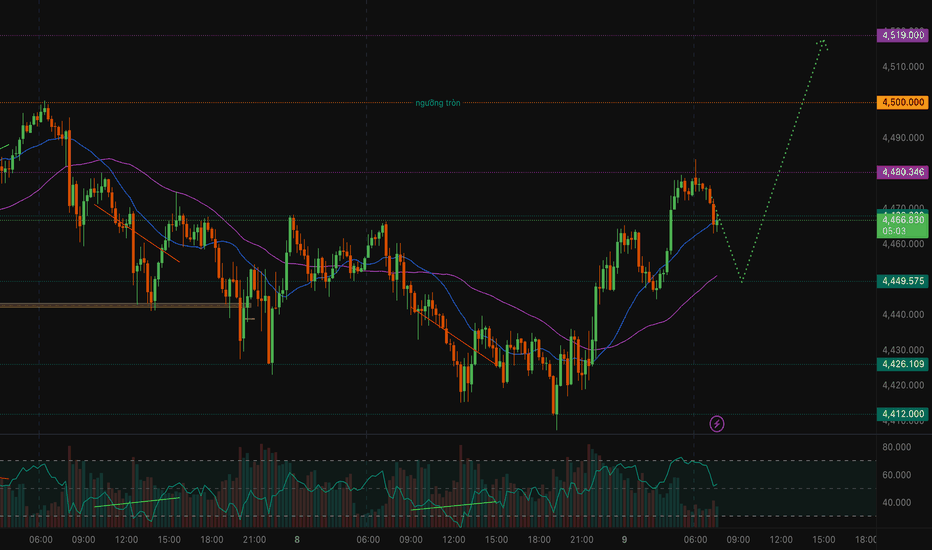 - Giá chạm hỗ trợ 4.450 - 4.427 - 4.412 (bật lại kèm nến M5 xác nhận)