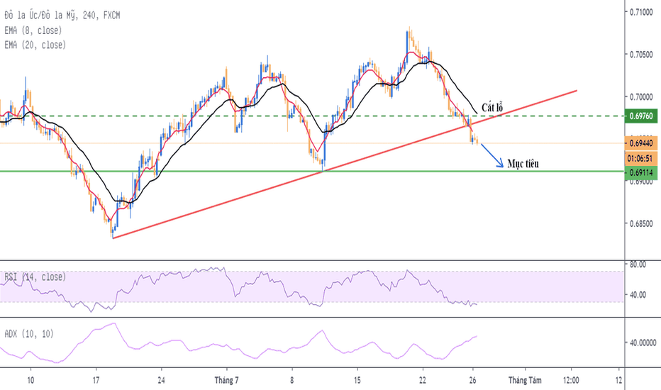 AUDUSD - Kỳ vọng giảm, chiến lược sell về vùng 0.692RBA mới cắt giảm lãi suất thể hiện tình trạng suy yếu của nền kinh tế Úc giai đoạn này, lạm phát có thể sẽ còn chững lại.