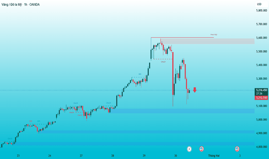 VÀNG - TIẾP TỤC ĐIỀU CHỈNH SAU NHỮNG NGÀY TĂNG TRƯỞNG!- Vàng đã giảm hơn 450 giá tính đến thời điểm hiện tại sau giai đoạn tăng mạnh và thiết lập ATH lịch sử quanh 5600. Đà giảm hiện tại cho thấy thị trường đang bước vào pha điều chỉnh.