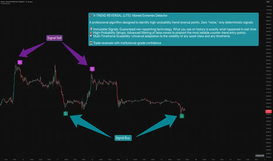 X-Trend Reversal is a professional algorithm designed to identify high-probability trend inflection points. We have stripped away the "noise" to provide you with deterministic, clean execution signals.