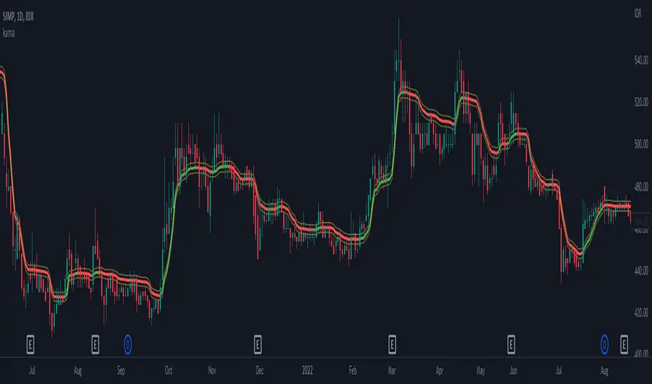 - KAMA trendline i.e. output value if price above the trendline and trendline indicates with green color, consider to buy/long position