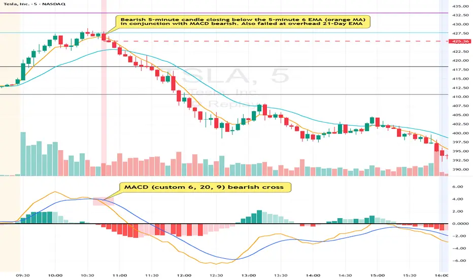This tool is primarily a visual aid for analyzing 5-minute price action relative to short-term EMA and MACD conditions, emphasizing the initial bearish shift after short-term bullish activity.
