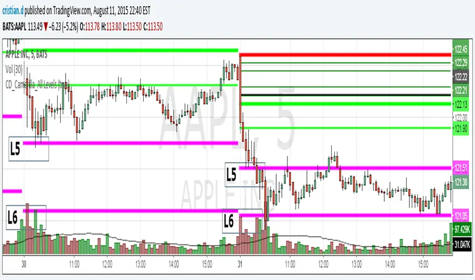 While for the level 5 there is some consensus the 6th one is hard to find. I updated level 5 with the most common use of lvl 5 formula , some links like this one forums.babypips.com/show-me-money-daytrading/44165-hourly-breakout-camarilla-pivots.html or from books (Secrets of a Pivot Boss) . Level 6 is a tough one, so please use this one experimentally . If you have other formulas for level 6, let me know. The 5 and 6 lvls are useful in volatile days.