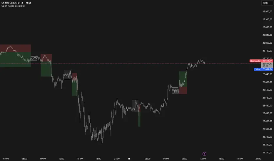 Open Range Breakout is a volatility harvesting tool designed to exploit directional expansion following major market opens. It isolates price action during initial liquidity injections to project institutional-grade zones that define a session's structural bias.