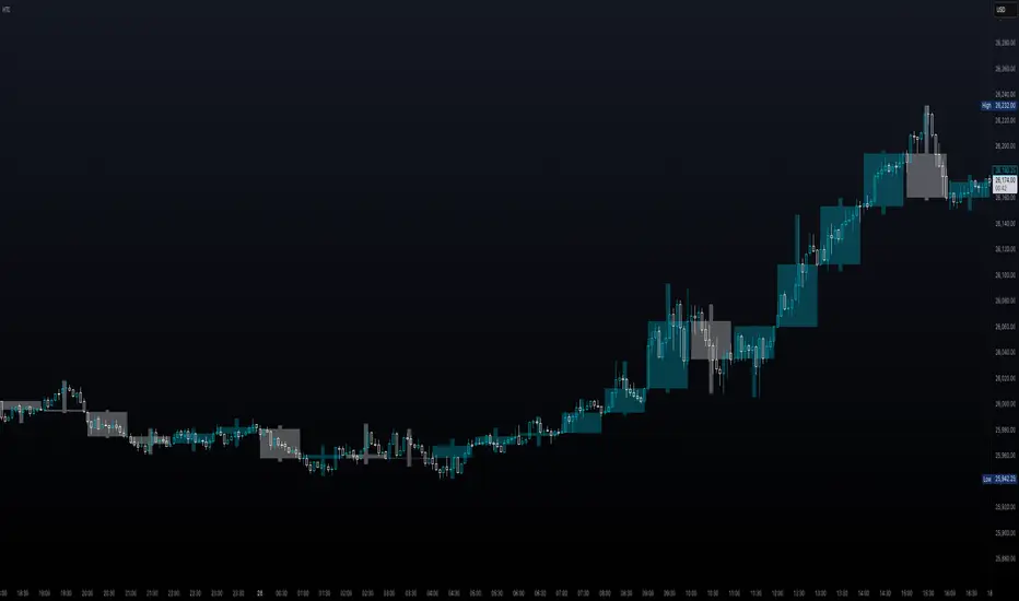 Select any higher timeframe to overlay on your lower timeframe to easily see LTF market structure within HTF candles.