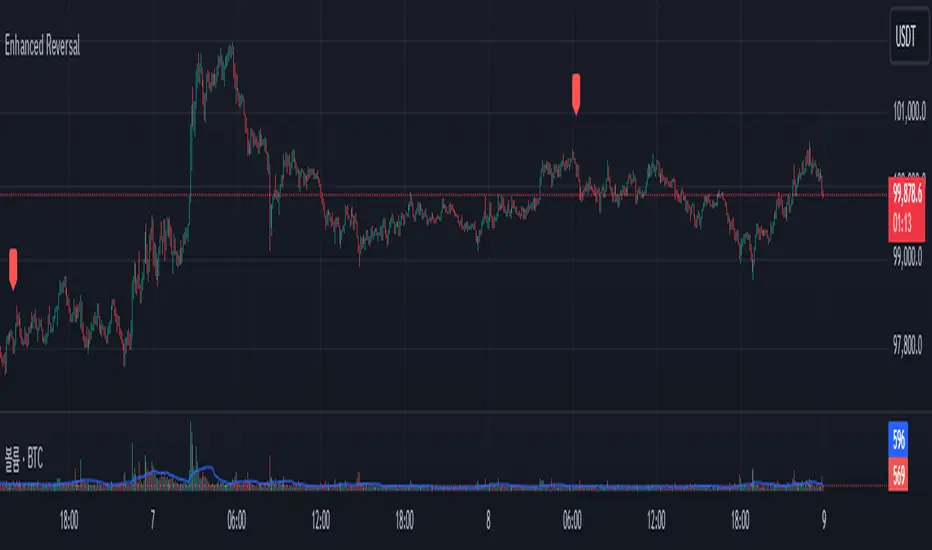 The Enhanced Reversal Detector is a highly refined indicator designed to identify precise trend reversals in financial markets. It improves upon the original reversal detection logic by incorporating additional filters for trend confirmation (using EMA), volume spikes, and candle patterns. These enhancements significantly increase the reliability and accuracy of reversal signals, making it an excellent tool for both short-term and long-term traders.