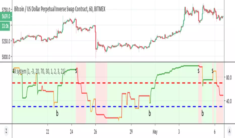 1. the bullish and bearish zones in lime and red are based on percent channel (you can modify it according to your needs) . this now is on 1 hour candles so I set it to 1% above and 3% bellow for BTC on bitmex.