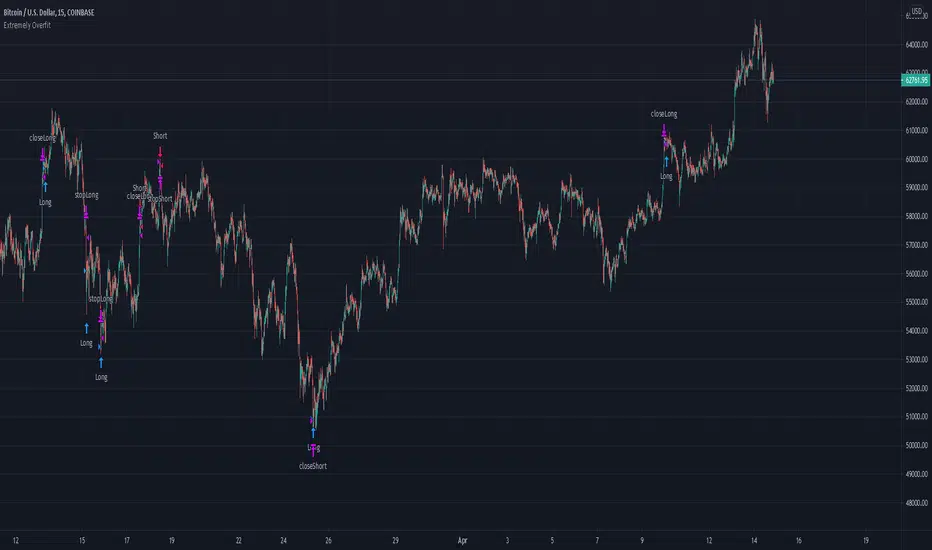 This is a highly overfit (in my opinion) script to long/short BTC on the 15m time frame. May be usable for other cryptocurrencies or timeframes with some parameter adjustments. I backtested it on a few exchanges with ETH.