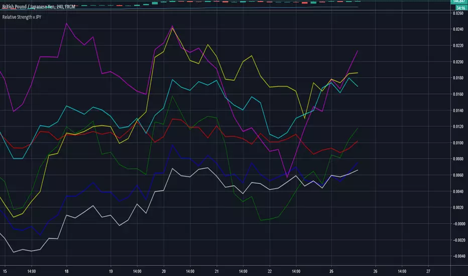 This script shows the percentage difference of price from the 200 day moving averages of various JPY pairs.