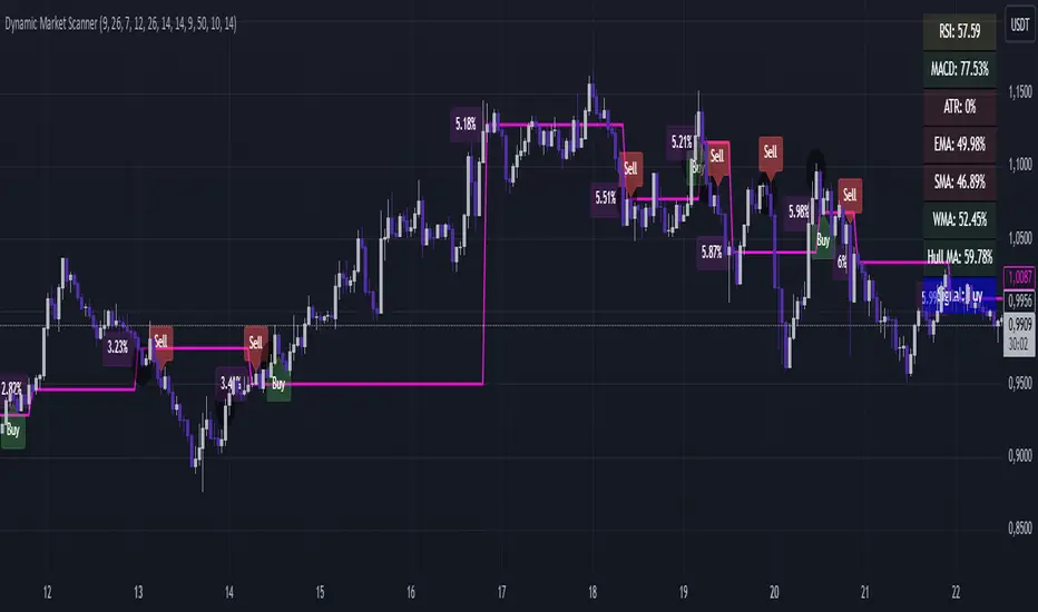 Dynamic Market Scanner is a powerful tool for analyzing financial markets, combining a variety of indicators to provide clear and understandable signals.