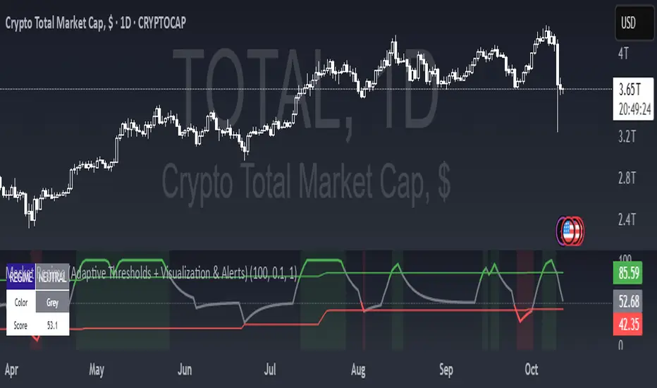 This indicator identifies market regimes (trending vs. mean-reverting) using adaptive thresholds that adjust to recent market conditions.
