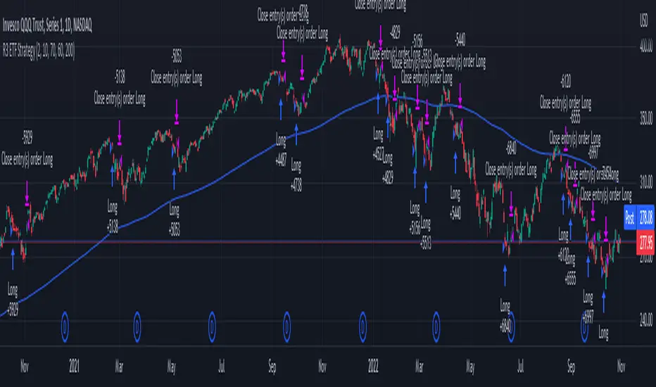 This strategy is a modification of the “R3 Strategy” from the book "High Probability ETF Trading" by Larry Connors and Cesar Alvarez. This RSI strategy is for a 1-day time-frame and has these 3 simple rules: