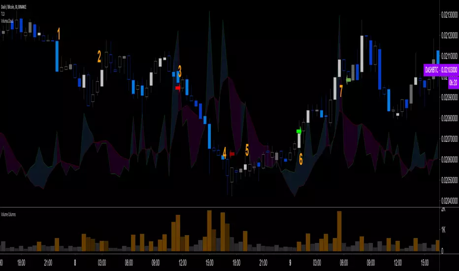 Volume Cloud does have practical uses. I will show here how I use volume to help me in selecting better probability entries, with only Volume Cloud and my TLD indicator on the chart (the Volume Columns are there to provide context for first-time users of the Volume Cloud).