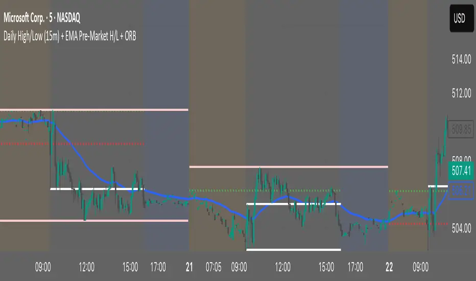 Daily High/Low (15m) + EMA Pre-Market H/L + ORB