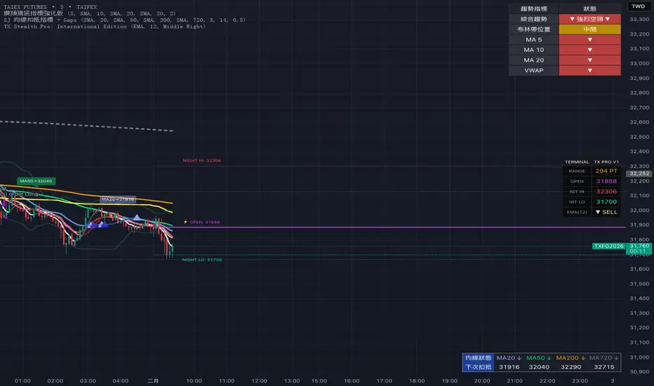 TX Stealth Pro is a high-performance, intra-day monitoring terminal specifically designed for index futures traders (optimized for Taiwan Index Futures - TX). This indicator merges a sleek, "Stealth" dashboard UI with critical session-based technical levels, allowing traders to monitor trend direction, volatility, and key liquidity zones without cluttering the price action.